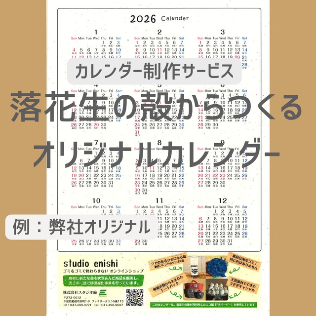 廃棄される落花生の殻を再活用した“アップサイクル素材”のカレンダーは、環境に配慮した取り組みとして高い評価を得られます。