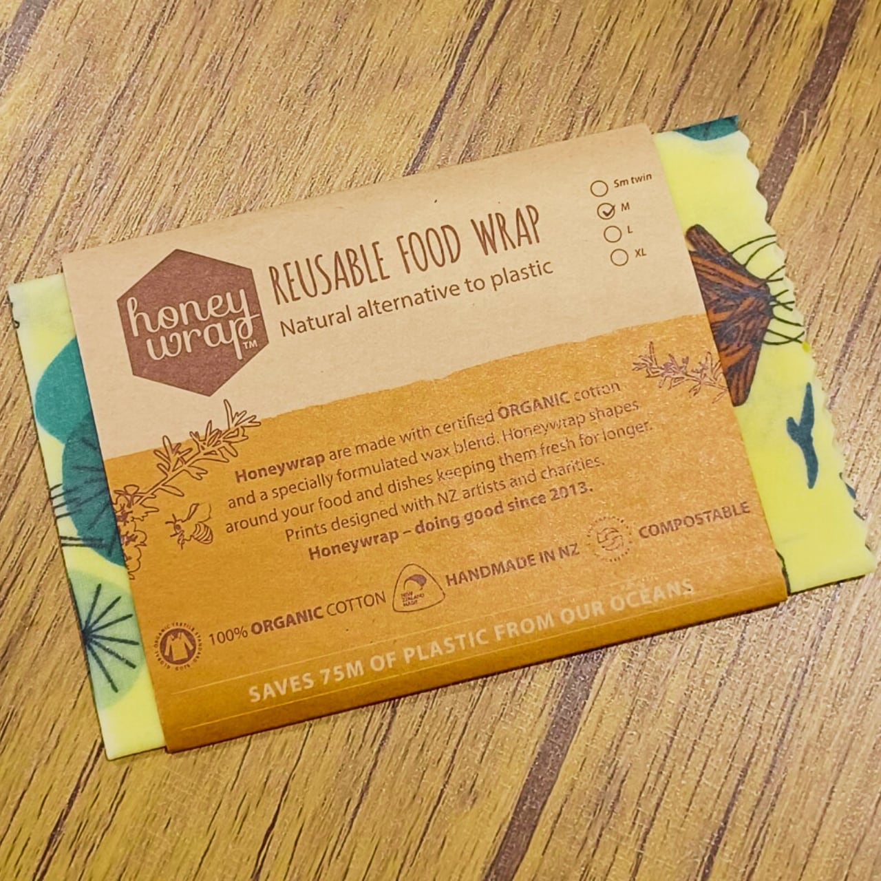 ハニーラップは、ミツロウ、樹木樹脂、ホホバオイルの混合物をブレンドしたGOTS認定のオーガニックコットンから作られています。