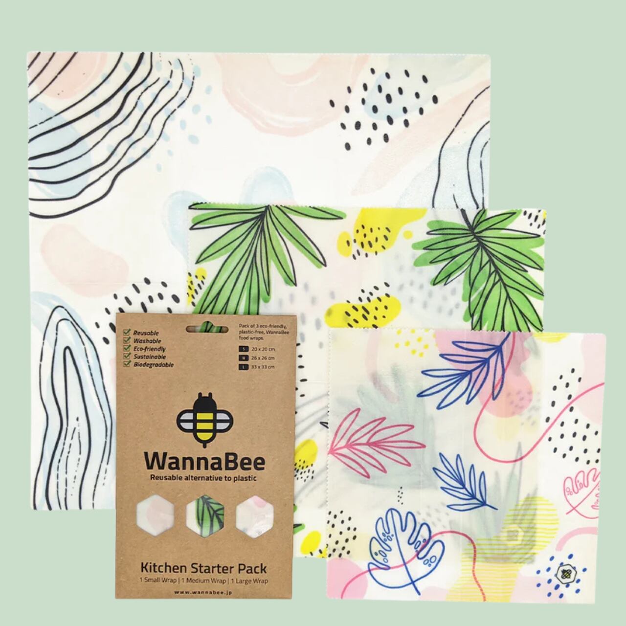 【オーガニックコットン、みつろう、ホホバオイルなどの天然素材でできた繰返し使えるエコラップ 】