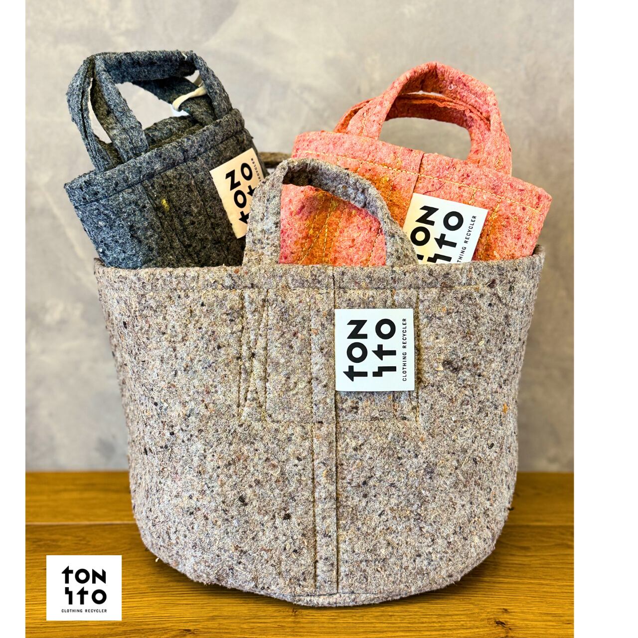 廃棄されてしまう衣料で作られた商品は世の中にたくさんありますが、TONITOでは、素材またはプロダクトに対してリサイクル率の高い物作りを目指しています。