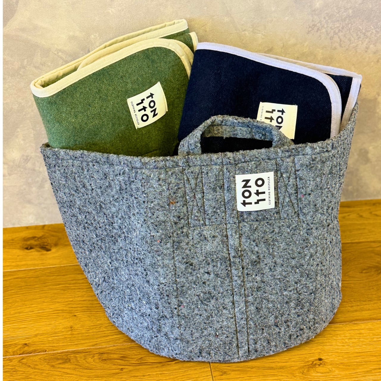色ごとに分別した廃棄衣類の生地をフェルト化し、新たな商品として生まれ変わりました。