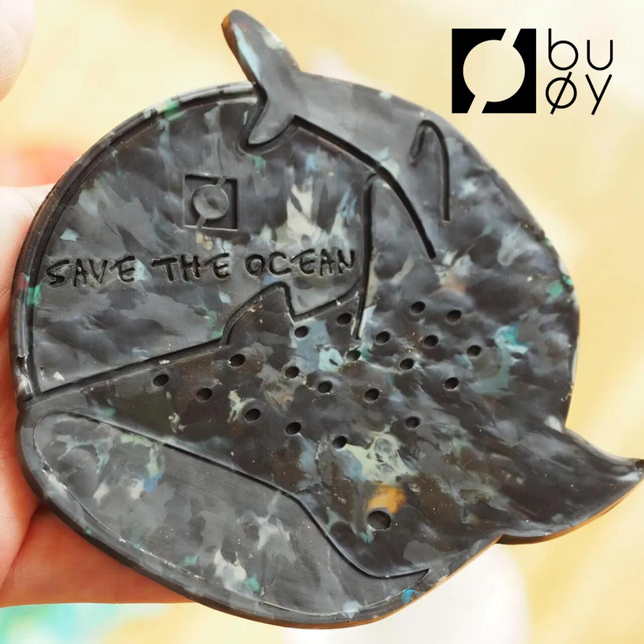 海洋プラスチックごみを材料に変えるブランドbuoy(ブイ)の、海洋生物のコースター「ジンベイザメ」。