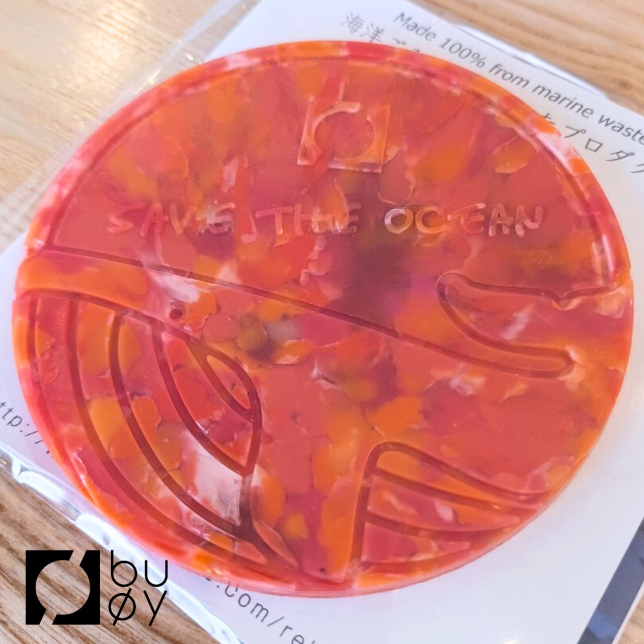 海洋プラスチックごみを材料に変えるブランドbuoy(ブイ)の、海洋生物のコースター「ジンベイザメ」。