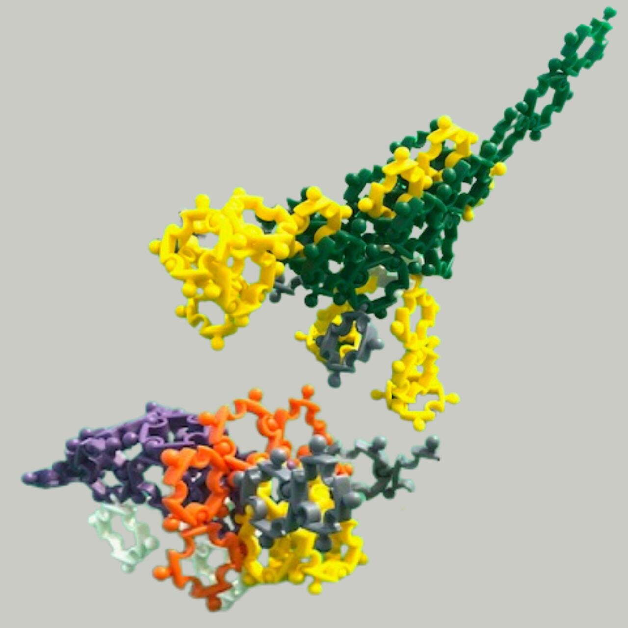 繋げて、曲げて、捻って、丸めて、自由自在に形が作れ、作った後も形を変えて楽しめる新感覚のブロック玩具。