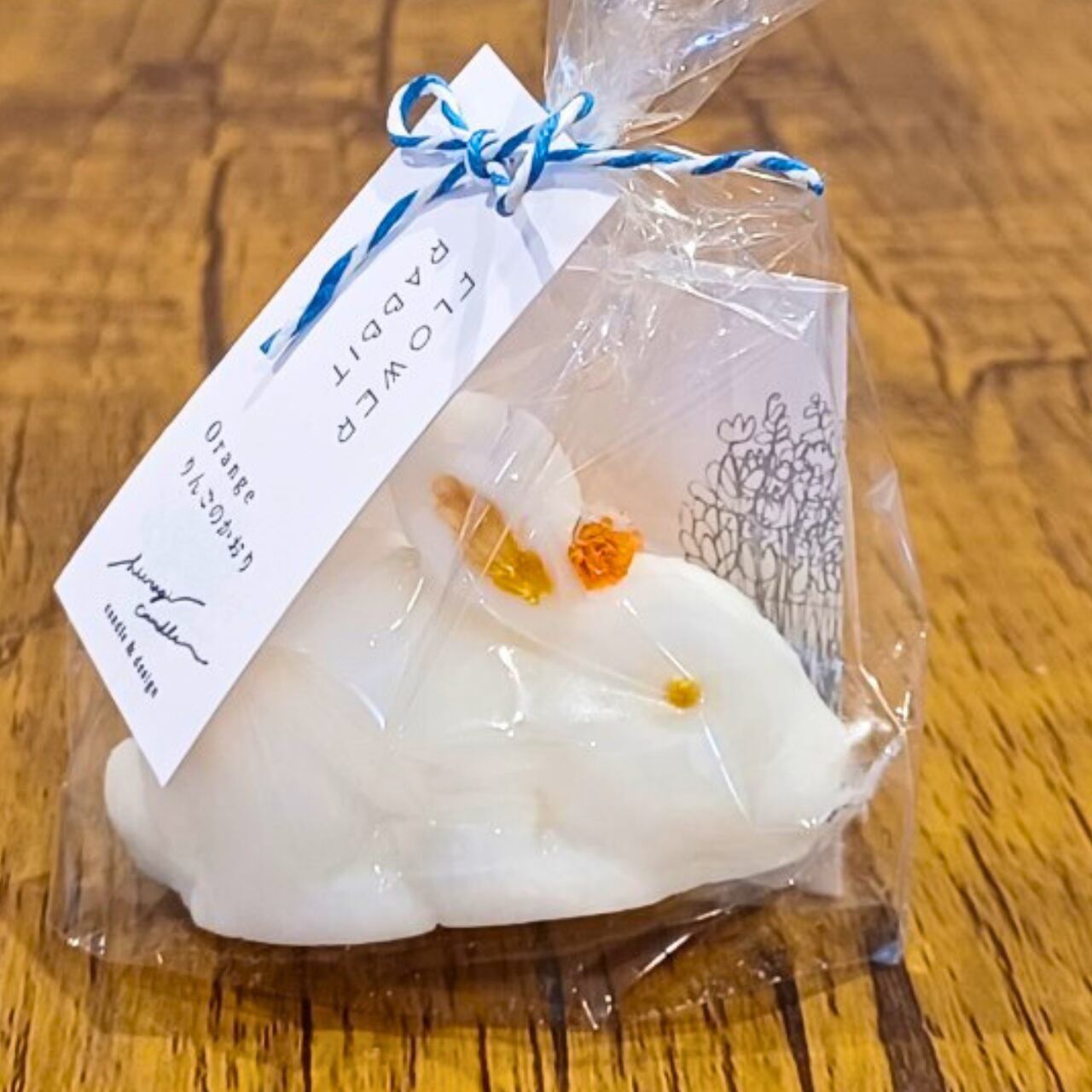 【天然素材のうさぎキャンドル ソイ&蜜蝋のハンドメイドアロマキャンドル|ひいらぎキャンドル フラワーラビット【S】オレンジ色/りんごの香り サスティナブル 環境にやさしい