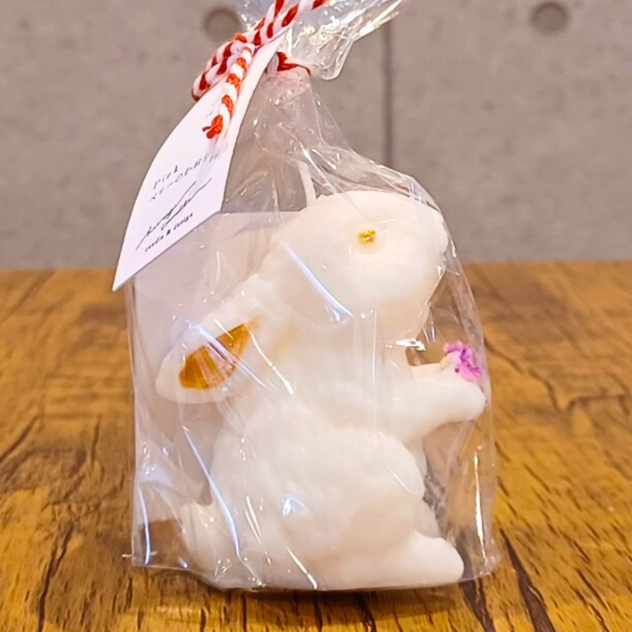 「ひいらぎキャンドル」が一つひとつ丁寧に手作りしている、天然素材のみを使用したうさぎのアロマキャンドルです。