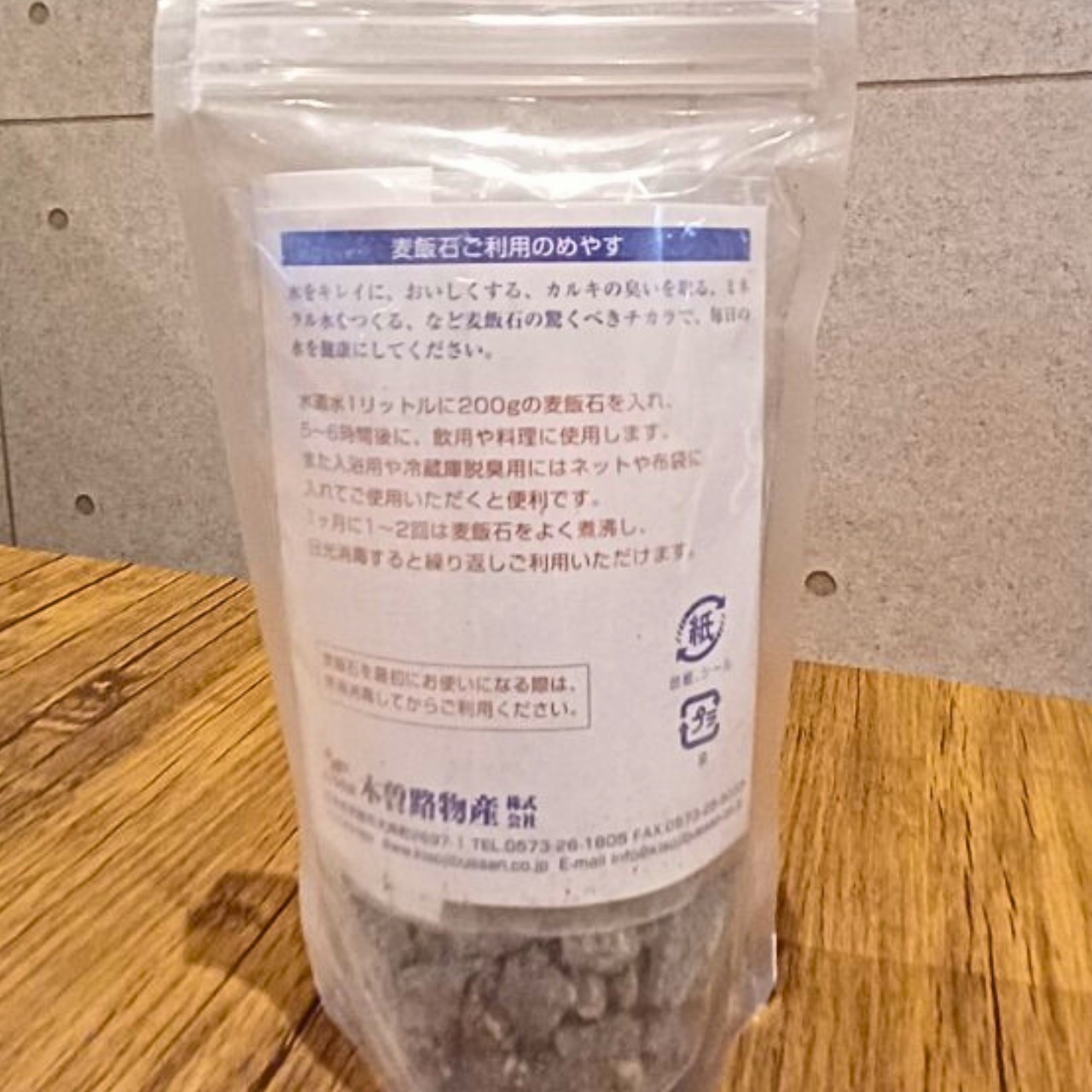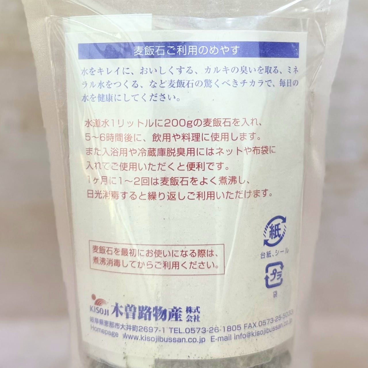 水道水1リットルに200gの麦飯石を入れ、5~6時間後に飲用や料理に使用します。